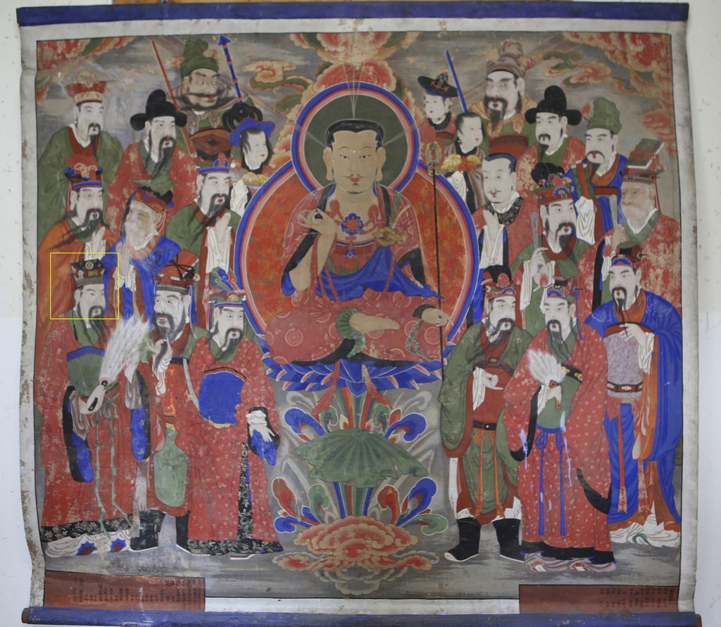 | ▲ 태극기(왼쪽 노란 사각형 부분) 그림이 포함된 지장시왕도 [대한불교조계종 제공, 재판매 및 DB 금지] |