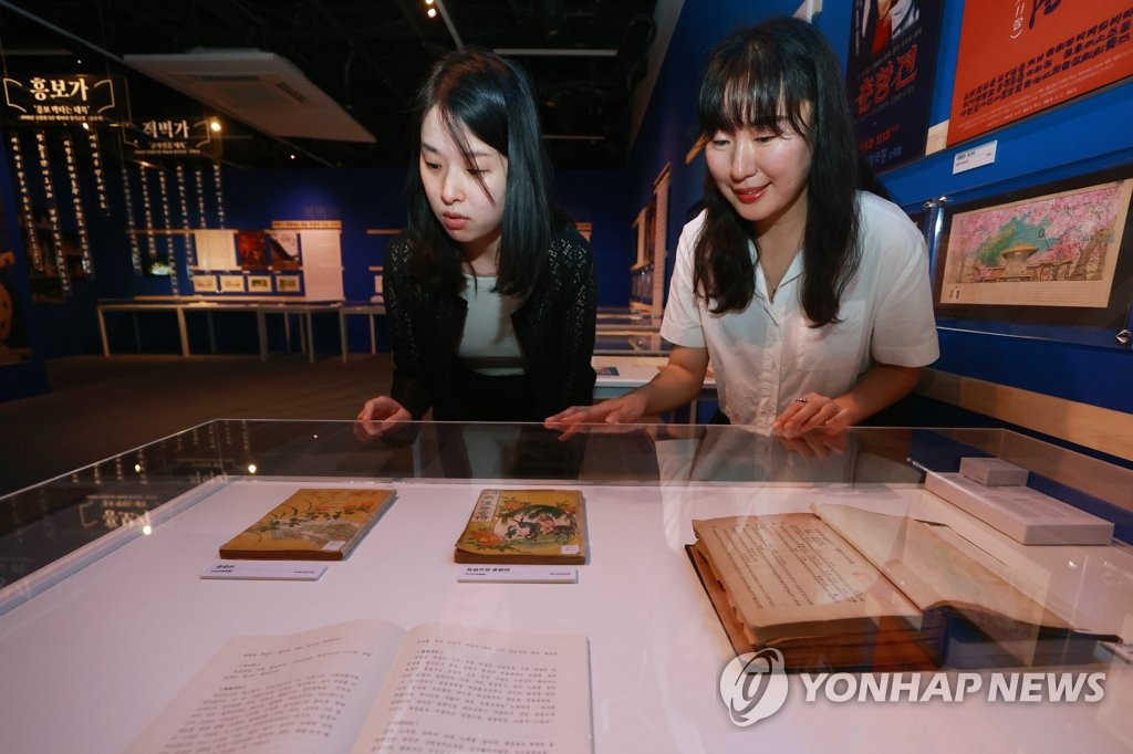 | ▲ 춘향가, 신분을 뛰어넘는 사랑이야기 (서울=연합뉴스) 진연수 기자 = 31일 서울 서초구 국립중앙도서관에서 열린 전시 '이야기, 무대에 오르다 - 도서와 아카이브로 보는 공연예술' 사전 설명회에서 참석자들이 전시를 둘러보고 있다. 국립중앙도서관이 국립중앙극장과 함께 기획한 이번 전시는 춘향과 몽룡 등 우리의 옛이야기를 소재로 한 문학 작품과 공연 예술을 함께 다룬다. 2023.7.31 jin90@yna.co.kr |