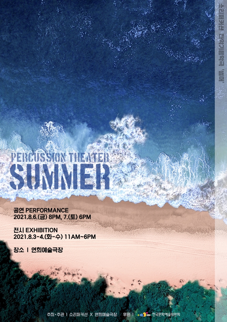 ▲ 소리퍼커션, 타악기 음악극 '서머' = 타악기 그룹 소리퍼커션이 다음 달 6~7일 서울 서대문구 연희예술극장에서 타악기 음악극 '서머'를 연다. 강렬한 태양, 바람의 에너지, 파도의 청량감 등을 타악기 울림으로 표현한다. 폴리 아티스트 이충규가 협업한다.