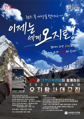 (양산=연합뉴스) 이정훈 기자 = 아웃도어 전문 기업 콜핑이 대한산악연맹과 함께 세계 산악 오지 3곳을 탐사할 '한국 청소년 오지탐사대'를 모집한다.