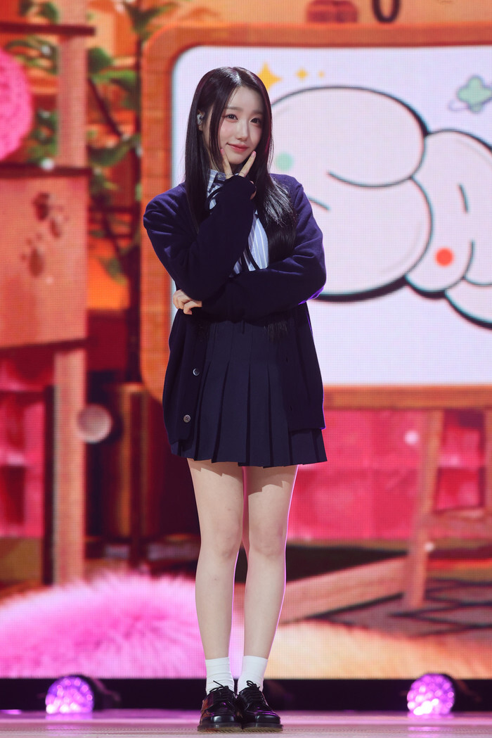 Mei, a member of South Korean girl group Say My Name, poses for photo during a showcase for the group's debut album with title song "WaveWay" in Seoul on Oct. 15, 2024. (Yonhap)