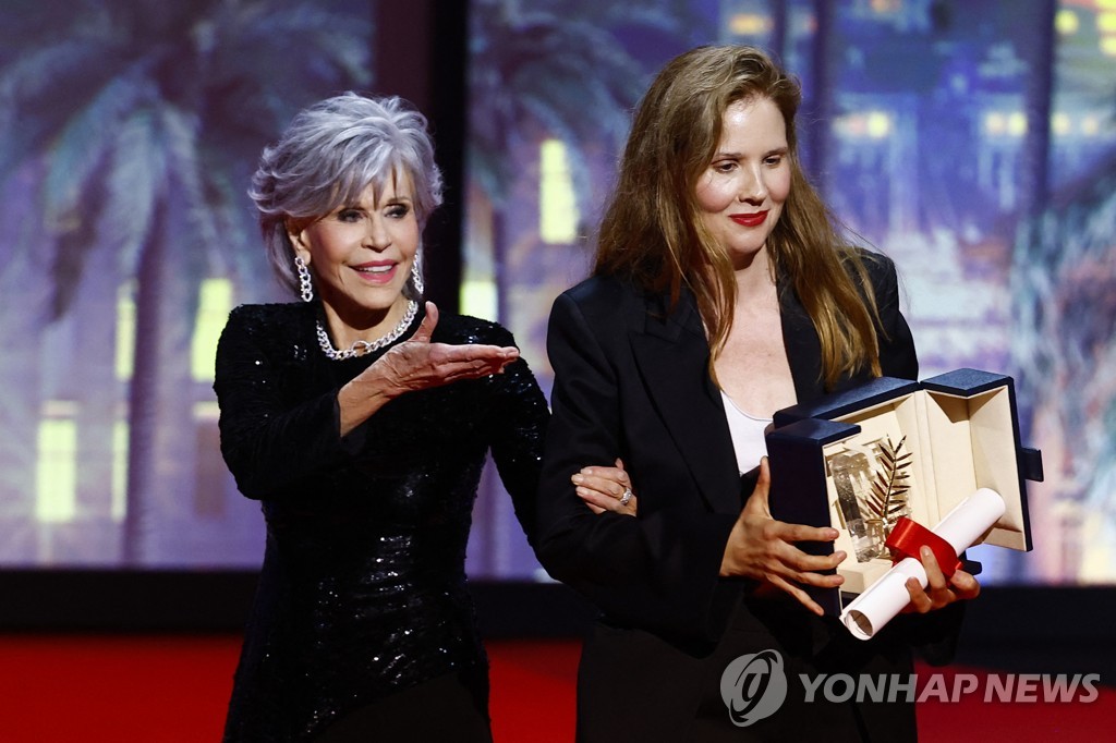 | ▲ 제76회 칸국제영화제 시상자 제인 폰다(왼쪽)와 수상자 쥐스틴 트리에 감독 [로이터=연합뉴스] |