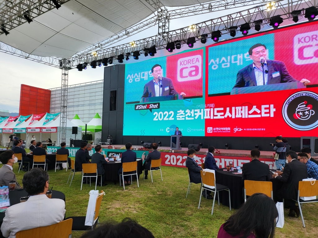 (춘천=연합뉴스) 이상학 기자 = 강원 춘천시와 강원정보문화산업진흥원 등이 마련한 '2022 춘천커피도시 페스타'가 15일 오후 서면 애니메이션 박물관에서 개막했다.
