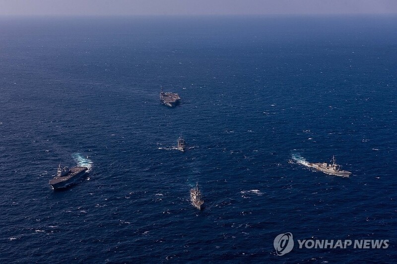 The latest drills mobilized the South's ROKS Yulgok Yi I Aegis-equipped destroyer, the USS Ronald Reagan aircraft carrier, the Aegis-equipped USS Shoup destroyer, and Japan's JS Hyuga helicopter destroyer among other warships, according to the South's Navy.