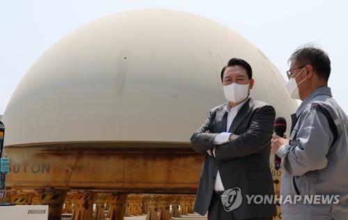 | ▲ President Yoon Suk-yeol (L) tours a nuclear reactor factory of Doosan Enerbility in Changwon, 300 kilometers southeast of Seoul, on June 22, 2022. (Yonhap) |