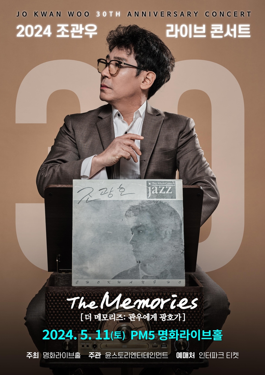 연예기획사 윤스토리엔터테인먼트는 20일 "조관우가 5월 11일 서울 영등포 명화라이브홀에서 30주년 콘서트 '더 메모리즈 : 관우에게 광호가'를 개최한다"고 밝혔다.