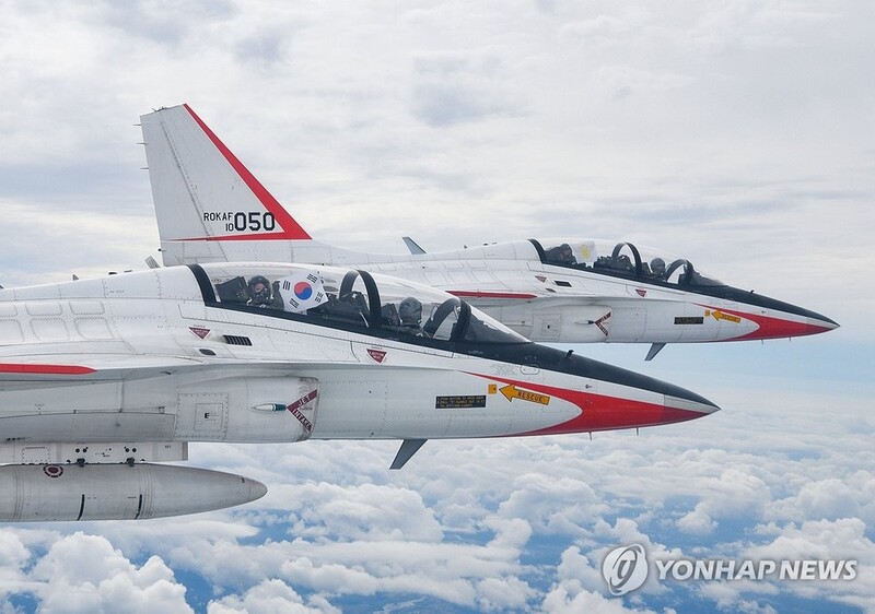 | ▲ This photo, provided by the Air Force, shows T-50 training aircraft during a flight operation on Oct. 18, 2025. (PHOTO NOT FOR SALE) (Yonhap) |