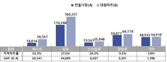 | ▲ 품목별 전통시장과 대형마트 간 가격비교 [소상공인시장진흥공단 제공. 재판매 및 DB 금지] |