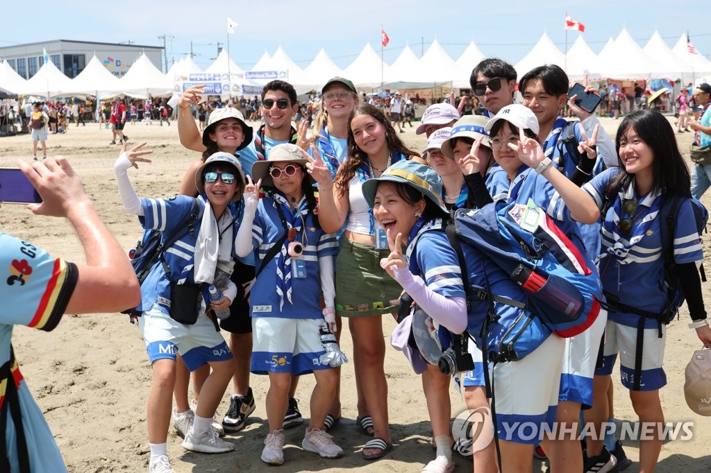 | ▲ "덥지만 즐거운 잼버리" (부안=연합뉴스) 임채두 기자 = 3일 오후 전북 부안군 새만금 세계스카우트 잼버리 델타구역에서 스카우트 대원들이 기념촬영을 하고 있다. 2023.8.3 doo@yna.co.kr |