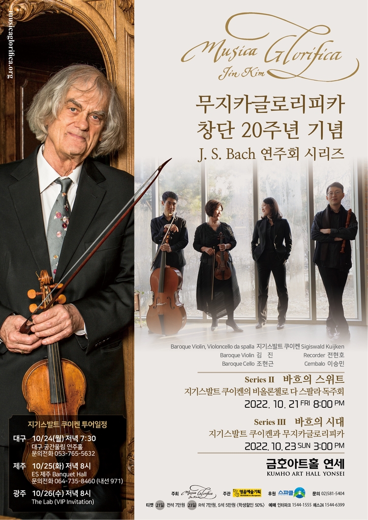 첫날인 21일 공연에서는 세계적인 고음악의 거장인 벨기에 출신 지기스발트 쿠이켄(78)이 바흐 무반주 첼로 모음곡과 무반주 바이올린 파르티타 등을 들려준다.