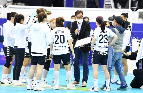 (서울=연합뉴스) 김동찬 기자 = 2020-2021 SK핸드볼 코리아리그 여자부에서 가장 강력한 우승 후보로 꼽히는 부산시설공단이 강재원 감독의 생일에 시즌 첫 승을 따냈다.