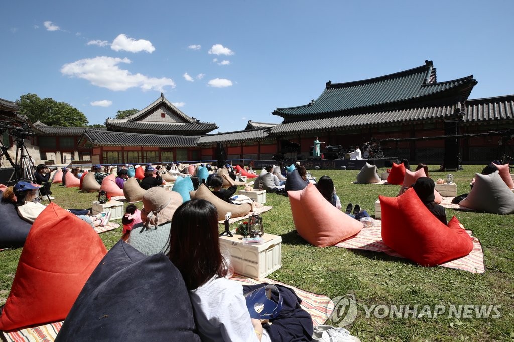 | ▲ People enjoy a musical performance at Changdeok Palace in Seoul while keeping the government's social distancing rules amid the COVID-19 pandemic on May 9. 2021. (Yonhap) |