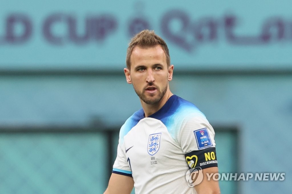 | ▲ 무지개 완장 대신 차별 반대 완장 찬 케인 (도하=연합뉴스) 김주성 기자 = 지난해 11월 21일 오후(현지시간) 카타르 도하의 칼리파 인터내셔널 스타디움에서 열린 2022 카타르 월드컵 조별리그 B조 1차전 잉글랜드 대 이란 경기. 잉글랜드 대표팀의 주장 해리 케인이 성소수자와 연대하는 취지에서 차려고 했던 '무지개색 완장' 대신 피파가 인정한 차별 반대 완장을 차고 있다. 2022.11.21 utzza@yna.co.kr |