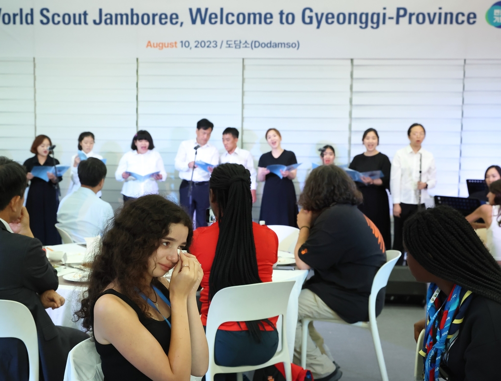 수원시에 짐을 푼 네덜란드와 파라과이 등 여러 국적의 스카우트 1천300여명은 이날 오후 경기아트센터 대극장에 모여 국악 공연단인 경기시나위오케스트라의 공연을 함께 관람했다.