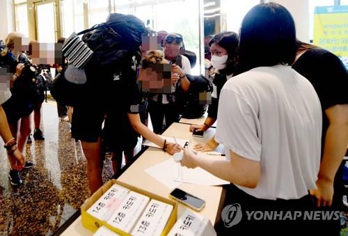 | ▲ Participants of the 25th World Scout Jamboree check into Baekseok University's dormitory in Cheonan, central South Korea, on Aug. 8, 2023, after leaving Saemangeum due to the approach of a typhoon. (Yonhap) |