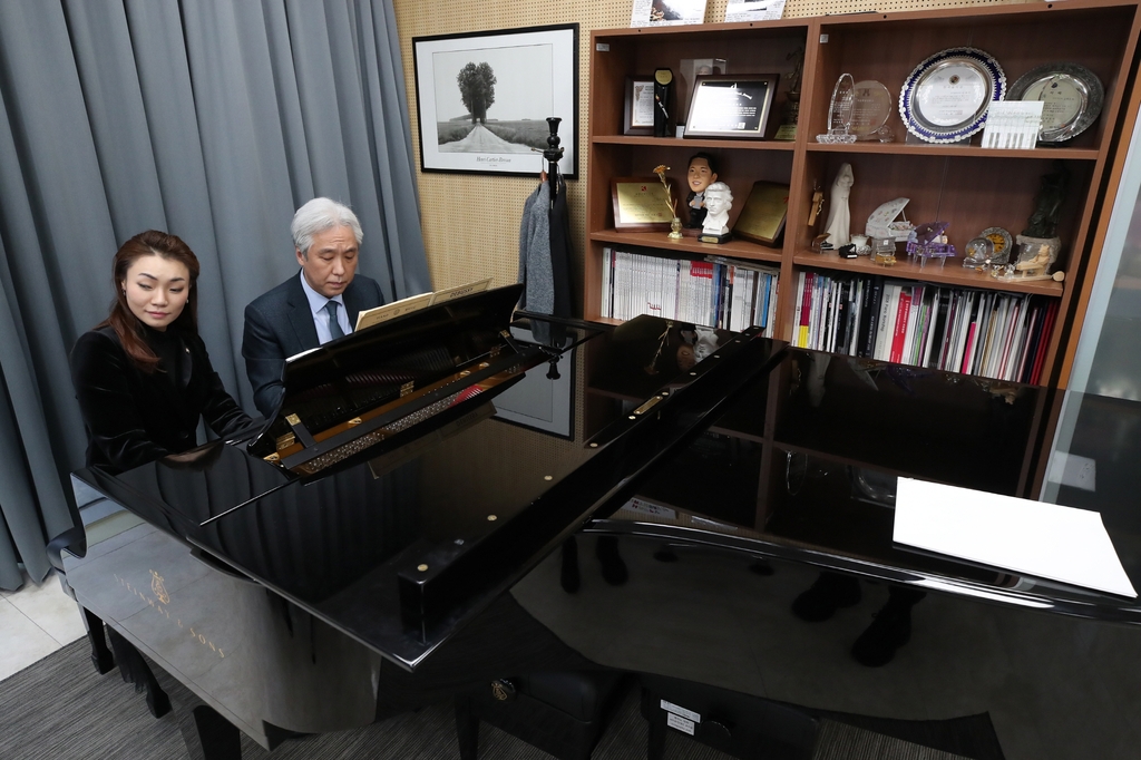 14일 서울 서초구 한국예술종합학교(한예종) 서초캠퍼스 401호. 김대진 한예종 총장과 김예지 의원이 피아노 한 대에 나란히 앉았다. 네 손이 건반 위를 미끄러지듯 움직이자 아름다운 선율이 피어오른다. 연주 중간중간 두 사람은 속도를 조절하며 서로 호흡을 맞춰나간다. 연습을 마쳤을 때 둘의 얼굴엔 환한 미소가 가득했다.