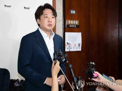 | ▲ Lee Jun-seok, leader of the ruling People Power Party, speaks to reporters at the National Assembly in Seoul on July 7, 2022, before attending the party's ethics committee convened to discuss his fate over allegations of sexual bribery and subsequent cover-up. (Pool photo) (Yonhap) |