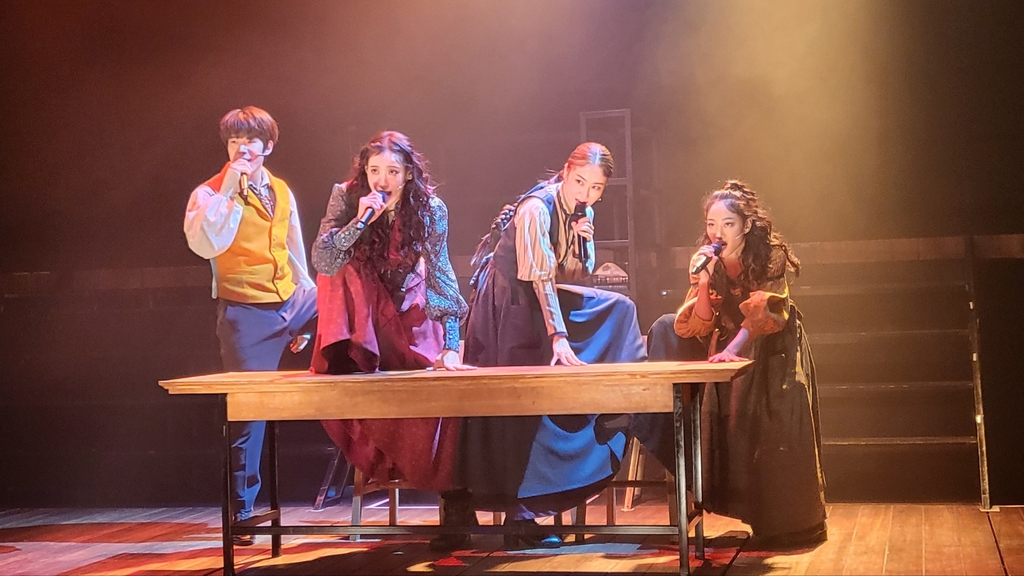 | ▲ 뮤지컬 '웨이스티드' 프레스콜 (서울=연합뉴스) 임지우 기자 = 13일 오후 서울 대학로 아트원씨어터에서 열린 뮤지컬 '웨이스티드' 프레스콜 행사에서 배우들이 장면을 시연하고 있다. 2022.12.21.wisefool@yna.co.kr |