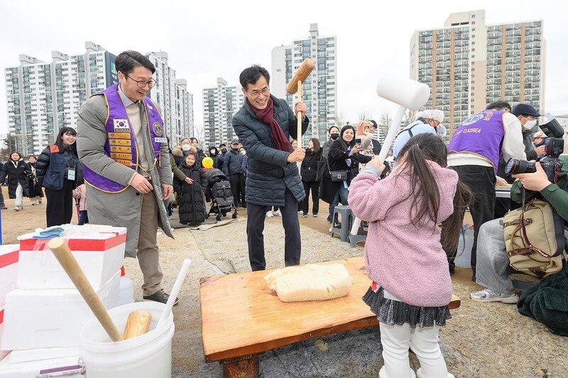 | ▲ 지난해 정원대보름 축제에서 떡메치기 체험에 참여한 이기재 양천구청장 [양천구 제공. 재판매 및 DB 금지] |
