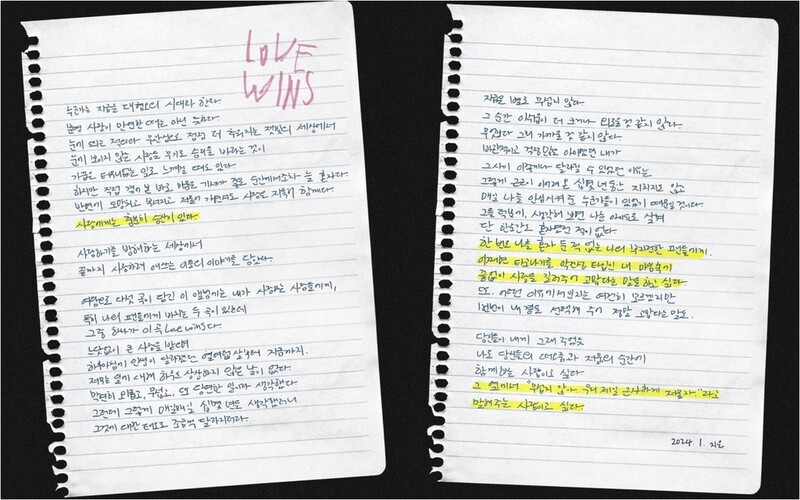 이어 "발매될 곡에 담은 메시지와 가장 반대되는 지점의 말이 있다면 그건 혐오"라며 "혐오 없는 세상에서 모든 사랑이 이기기를, 누구에게도 상처 되지 않고 곡의 의미가 전달되기를 진심으로 바란다"고 덧붙였다.