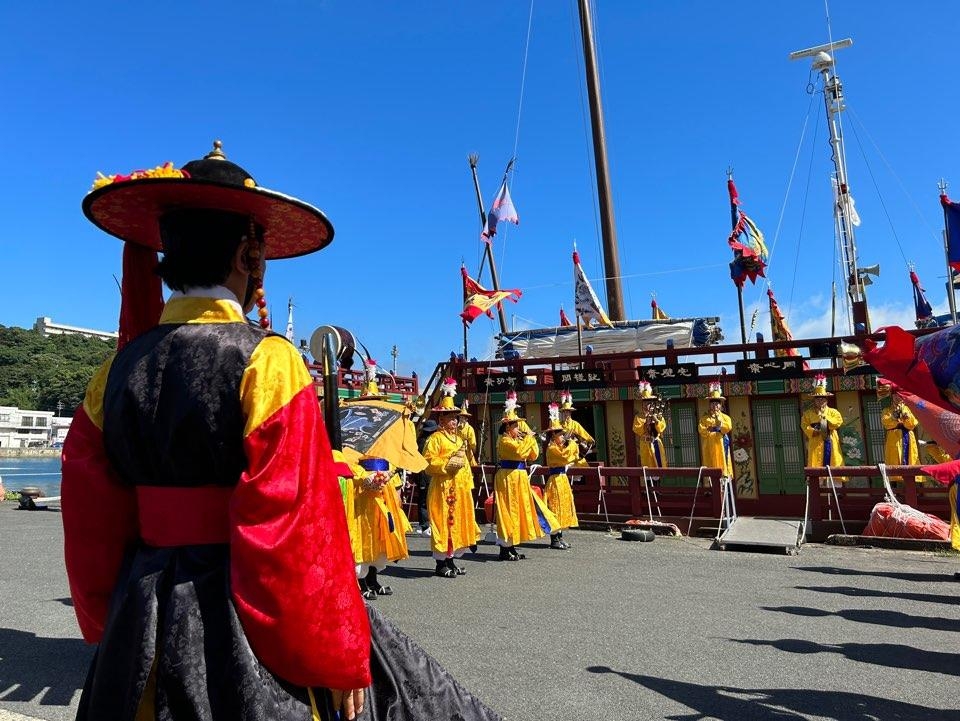 통신사선 재현에 참여한 홍순재 국립해양문화재연구소 학예연구사는 "원래는 가네이시 성터에서 항구 쪽으로 향하는데, 올해는 배가 들어오면서 행진 경로도 달라졌다"며 웃었다.