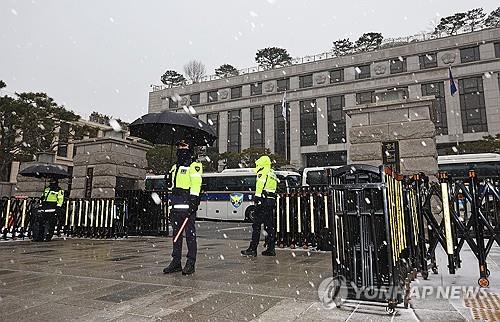 | ▲ Police are on duty in front of the Constitutional Court in Seoul on Jan. 31, 2025. (Yonhap) |