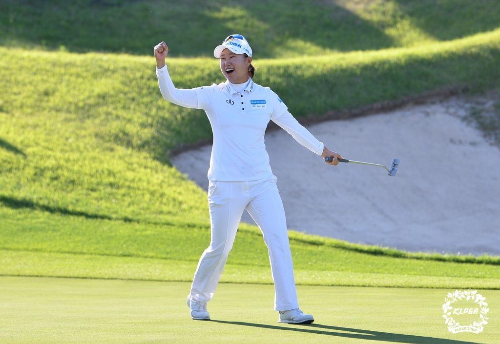 | ▲ 우승 퍼트를 넣고 환호하는 정윤지. [KLPGA 제공. 재판매 및 DB 금지] |