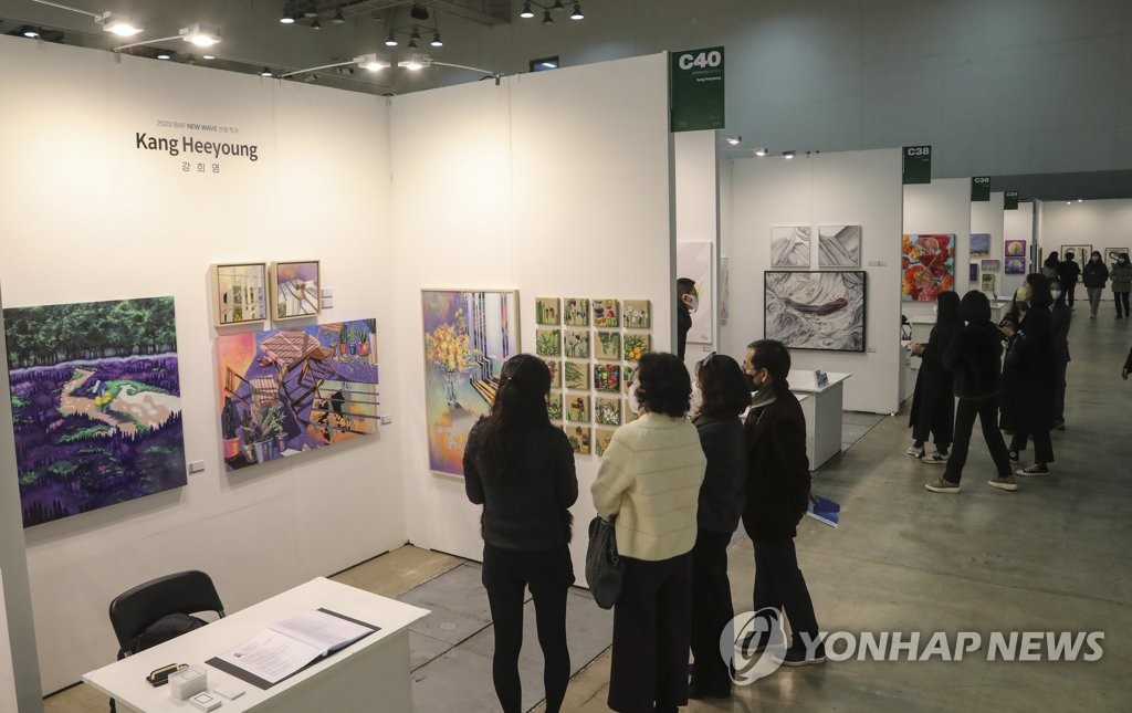 | ▲ 직거래 미술시장 부산국제아트페어 개막 (부산=연합뉴스) 조정호 기자 = 1일 부산 해운대구 벡스코 제2전시장에서 열린 부산국제아트페어에서 초청 인사들이 미술작품을 둘러보고 있다. 올해로 21회째를 맞은 부산국제아트페어는 '개별적인 기억, 집합하는 연대'를 주제로 한국, 일본, UAE, 인도, 몽골, 브루나이, 베네수엘라 등 9개국 국내외 작가 250여 명의 작품 3천여 점이 선보인다. 2022.12.1 ccho@yna.co.kr |