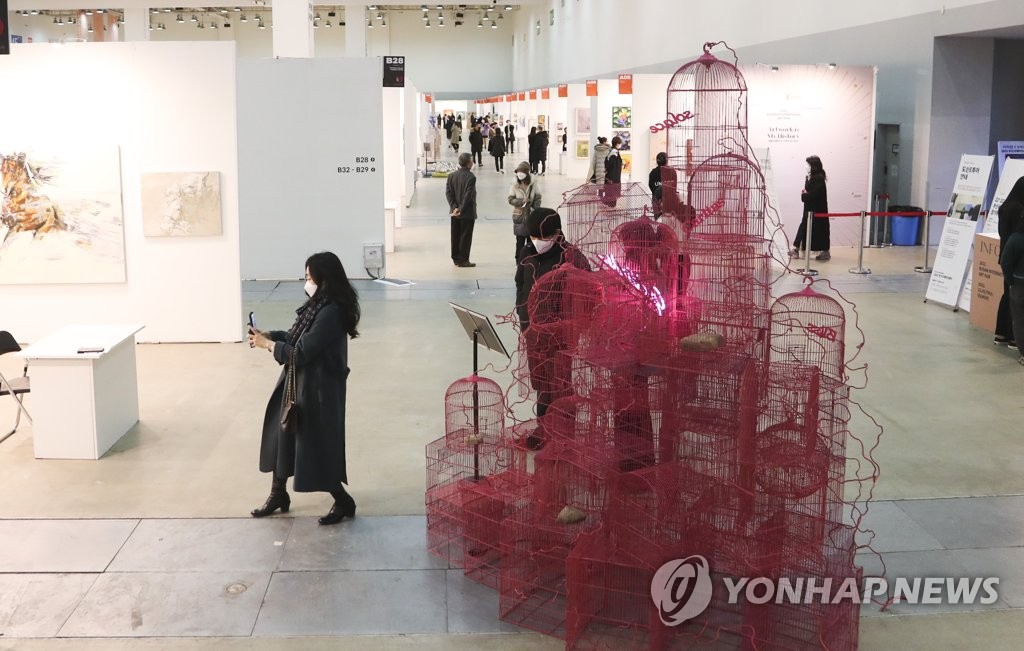 | ▲ 부산국제아트페어 개막 '열린 미술장터로 오세요.' (부산=연합뉴스) 강덕철 기자 = 1일 부산 해운대구 벡스코 제2전시장에서 열린 부산국제아트페어에서 관람객들이 미술작품을 감상하고 있다. 2022.12.1 kangdcc@yna.co.kr |
