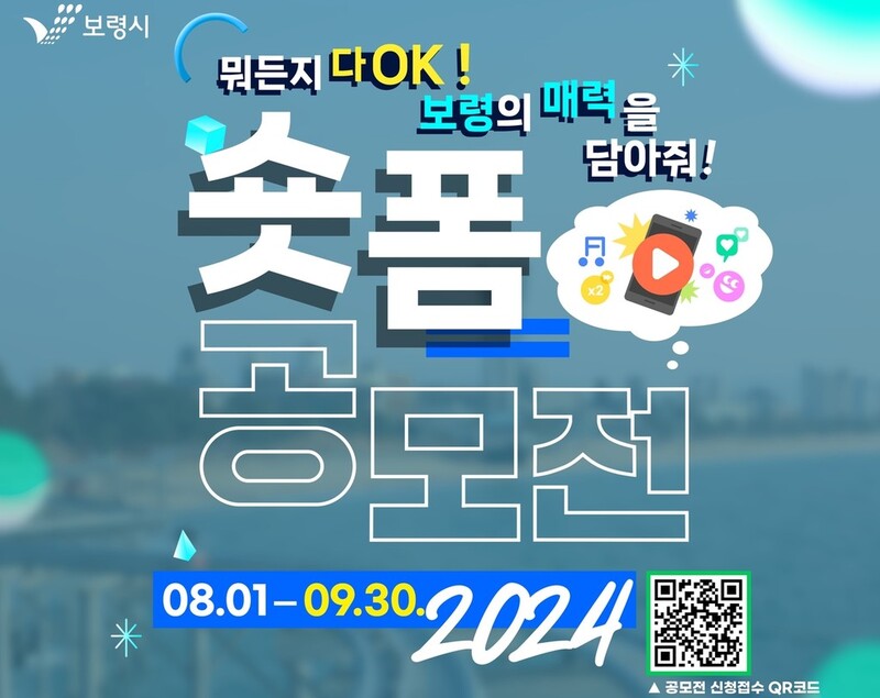 (보령=연합뉴스) 정윤덕 기자 = 충남 보령시는 자연·관광·축제 등 보령의 매력을 알릴 수 있는 콘텐츠를 발굴하기 위해 '뭐든지 다 OK! 보령의 매력을 담아줘'를 주제로 숏폼 영상 공모전을 개최한다고 1일 밝혔다.