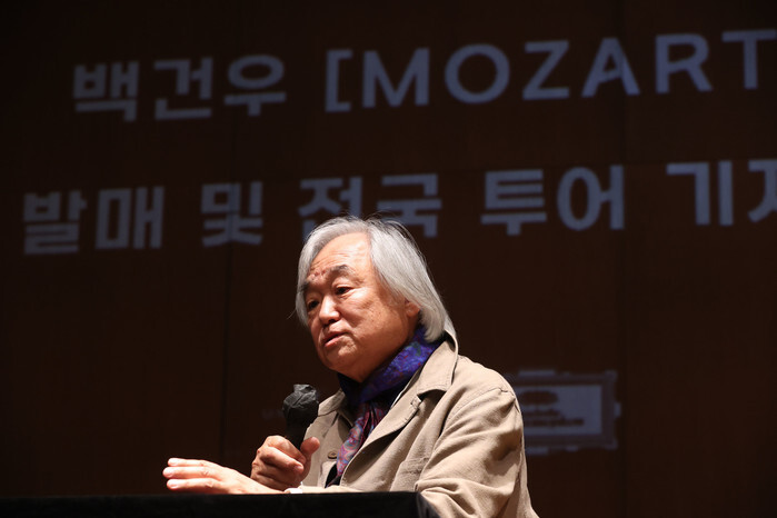 South Korean pianist Paik Kun-woo speaks during a publicity event in Seoul on May 16, 2024 to promote the release of his new album "Mozart: Piano Works 1." (Yonhap)
