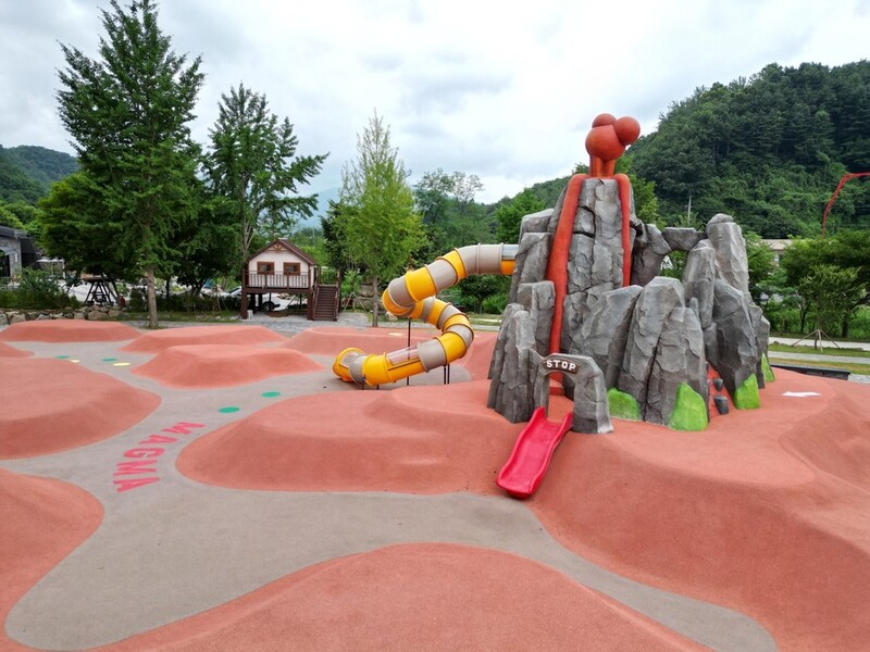 한탄강세계지질공원 센터 야외 3천300㎡ 규모로 조성한 이 놀이터는 화산이 폭발해 마그마가 흘러내리는 모습을 형상화했으며 무료로 이용할 수 있다.