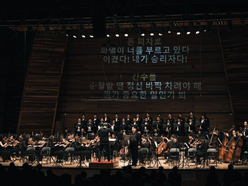 이날 10분가량 이어진 열광적인 커튼콜을 이끈 지휘자 아드리앙 페뤼숑은 마치 혁명 최전선의 투사처럼 몸과 마음을 던져 박진감 넘치는 음악을 만들어냈다. 그는 처음부터 끝까지 모든 독일어 가사를 따라 부르며 극적인 제스처로 관객의 몰입도를 높였다.