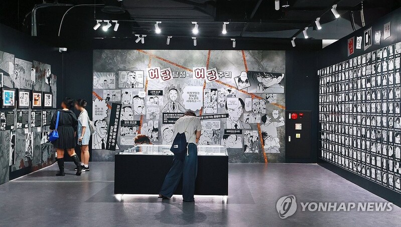 | ▲ 허당 탐정들의 허당추리 (서울=연합뉴스) 진연수 기자 = 30일 오후 서울 마포구 AK플라자 홍대에서 열린 연재 30주년 기념 명탐정 코난전을 찾은 관람객들이 전시를 둘러보고 있다. 2024.7.30 jin90@yna.co.kr |