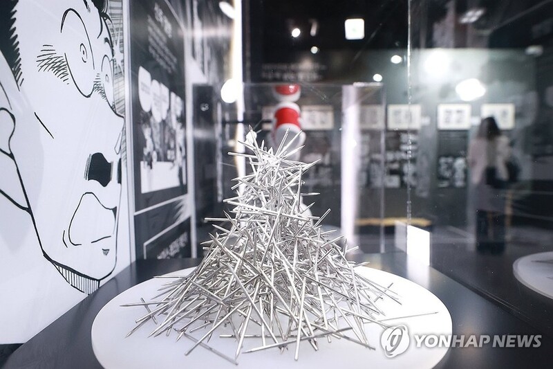 | ▲ 이게 바로 코난이 사용한 마취침 (서울=연합뉴스) 진연수 기자 = 30일 오후 서울 마포구 AK플라자 홍대에서 열린 연재 30주년 기념 명탐정 코난전에 만화 속 아이템이 전시되어 있다. 2024.7.30 jin90@yna.co.kr |
