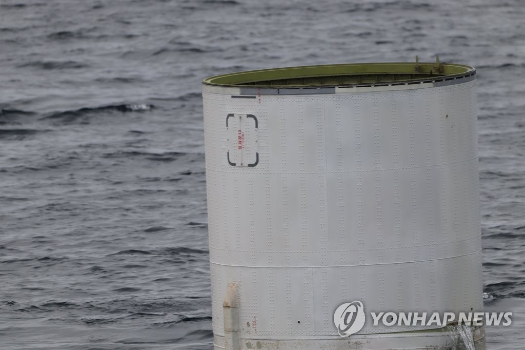 | ▲ This photo, provided by South Korea's Joint Chiefs of Staff on May 31, 2023, shows an object believed to be part of North Korea's space launch vehicle that was discovered in the Yellow Sea. (PHOTO NOT FOR SALE) (Yonhap) |