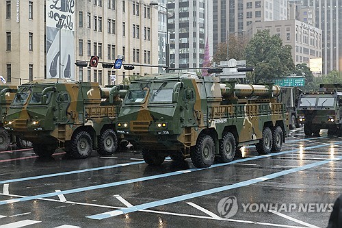 | ▲ This file photo, taken Sept. 26, 2023, shows vehicles carrying ground-to-ground Hyunmoo missiles during a military parade in central Seoul. (Pool photo) (Yonhap) |