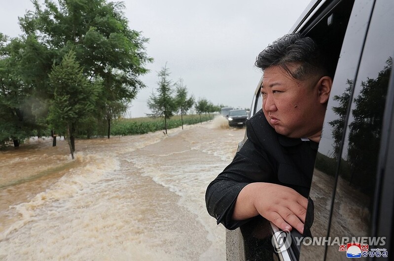 | ▲ This photo, carried by North Korea's official Korean Central News Agency on July 29, 2024, shows the North's leader Kim Jong-un visiting flood-hit areas in the city of Sinuiju and Uiju County of North Phyongan Province. (For Use Only in the Republic of Korea. No Redistribution) (Yonhap) |
