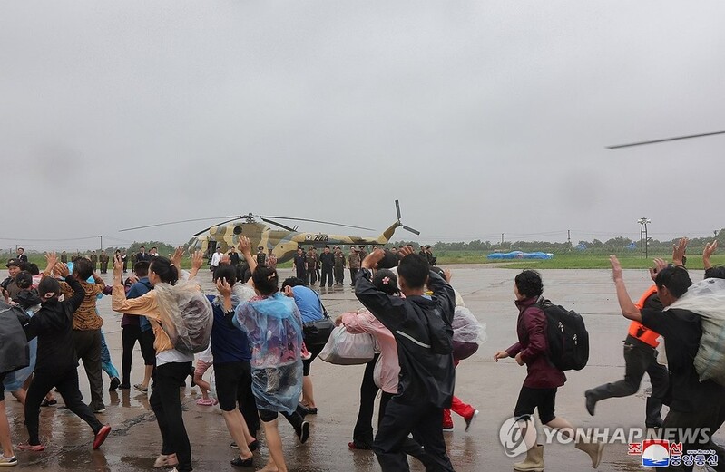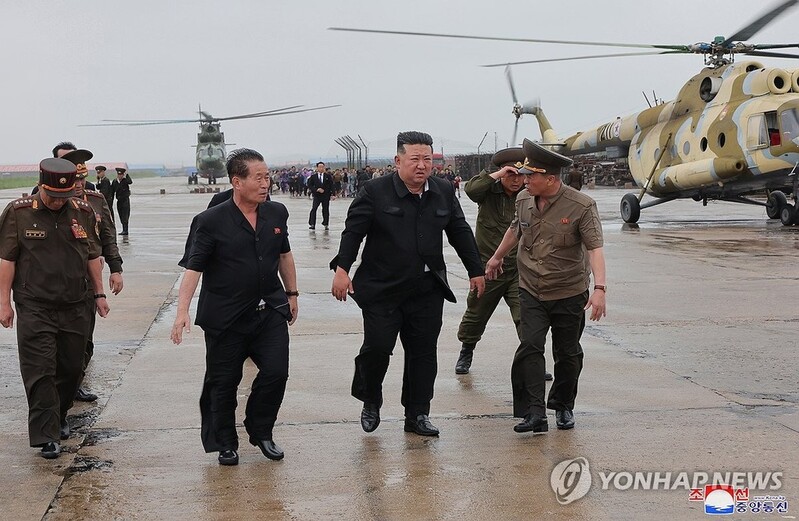 SEOUL, July 29 (Yonhap) -- North Korean leader Kim Jong-un has visited flood-hit areas near the Amnok River and guided an operation to rescue around 5,000 isolated residents with the military's helicopters, Pyongyang's state media reported Monday.