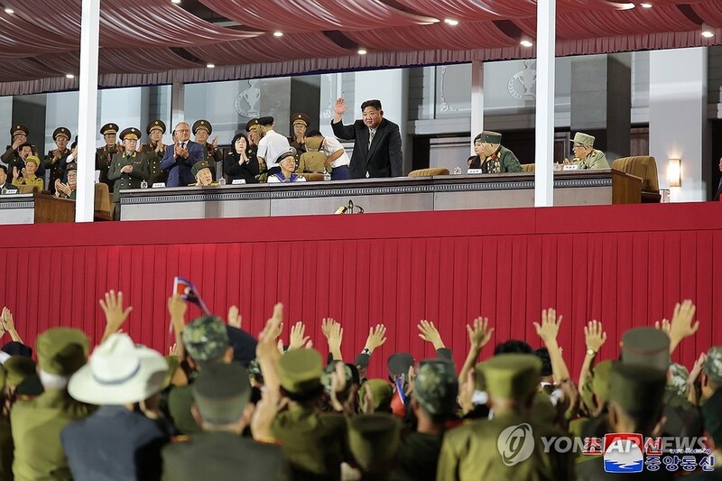 The participants watched a video highlighting the "feats and fighting spirit" of the wartime generation, followed by an evening parade, fireworks and a nighttime performance, according to the KCNA.