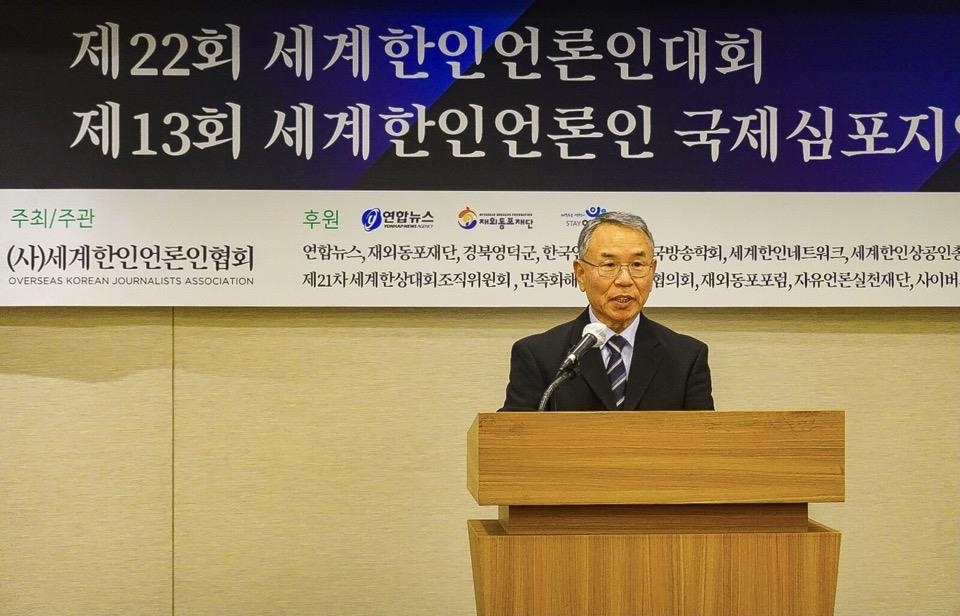 김성곤 재외동포재단 이사장은 정광일 재외동포재단 사업이사가 대독한 축사에서 "재외 언론인은 각국 동포사회에 우리 말과 글로 모국의 소식을 전달함으로써 한민족 정체성을 유지하는 데 크게 기여하고 있다"고 치하했다.