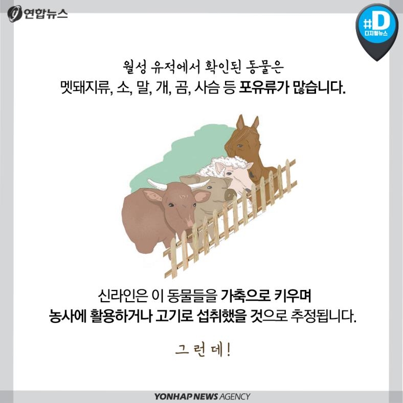 신라인은 이 동물들을 가축으로 키우며 농사에 활용하거나 고기로 섭취했을 것으로 추정됩니다.