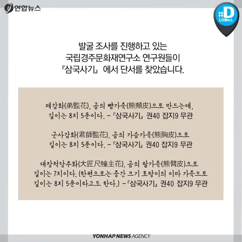 "제감화(弟監花), 곰의 뺨가죽(熊頰皮)으로 만드는데, 길이는 8치 5푼이다." - '삼국사기' 권40 잡지9 무관