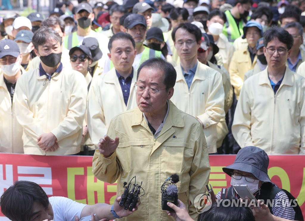 Mayor Hong Joon-pyo convened an emergency press conference at the scene about 20 minutes later.