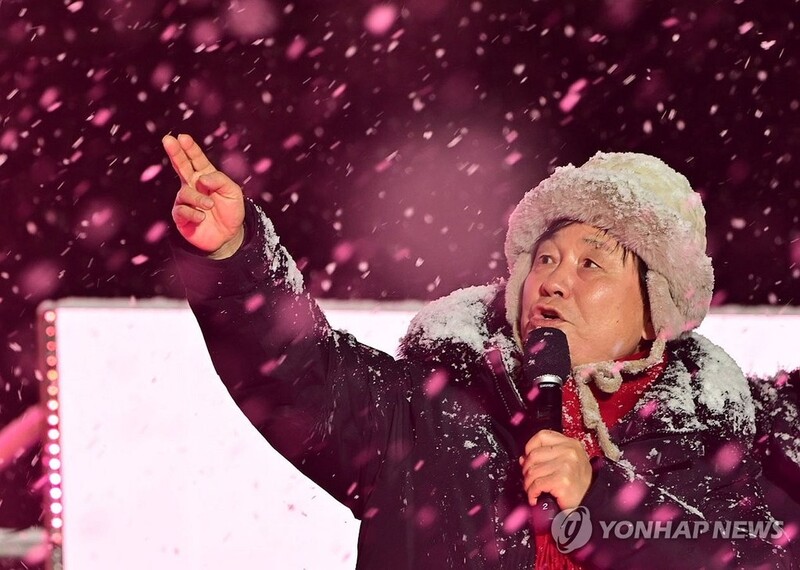 ▲ 최문순 군수 "화천산천어축제 방문을 환영합니다" (화천=연합뉴스) 양지웅 기자 = 국내 대표 겨울 축제인 2026 화천산천어축제가 개막한 10일 강원 화천군 화천읍 화천천에 마련된 축제장 특설무대에서 최문순 군수가 환영사를 하고 있다. 2026.1.10 yangdoo@yna.co.kr