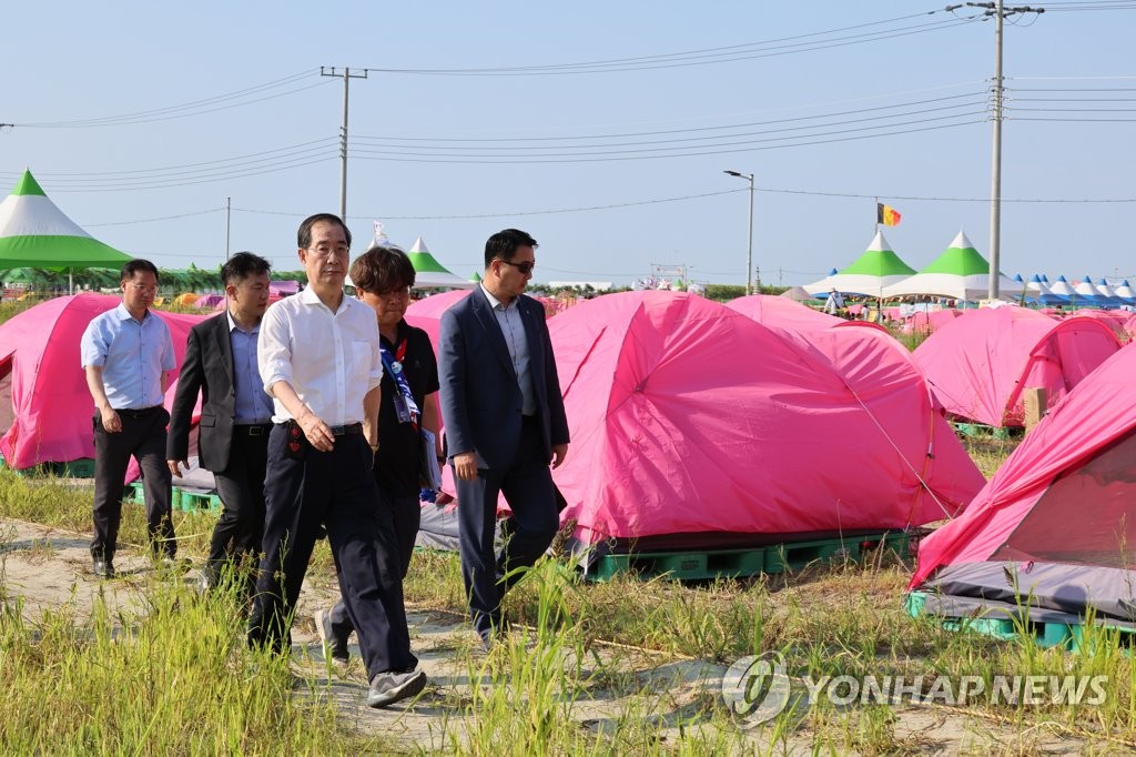 Later in the day, Han visited the campsite in Saemangeum and pledged that the central government will take the lead in the efforts to ensure the safety of Jamboree participants.