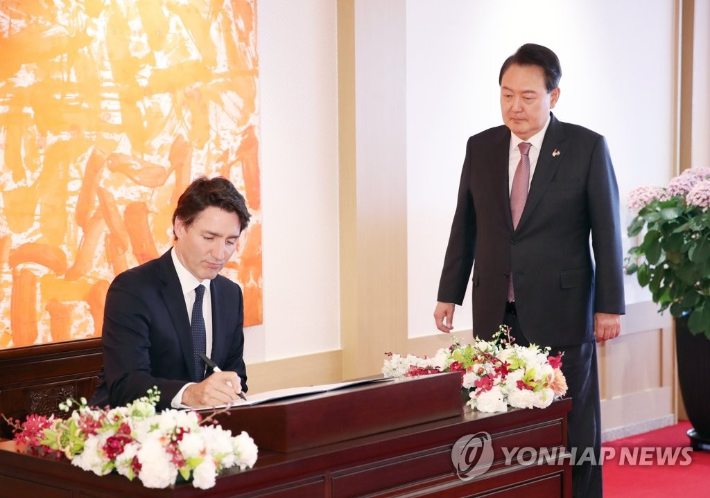 Trudeau reaffirmed Canada's support for the goals of the Yoon administration's Audacious Initiative, which offers massive economic assistance to North Korea in exchange for its denuclearization steps.
