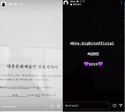 | ▲ 방탄소년단 리더 RM이 인스타그램에 인증한 계약서와 '2025년' 문구 [RM 인스타그램. 재판매 및 DB 금지] |