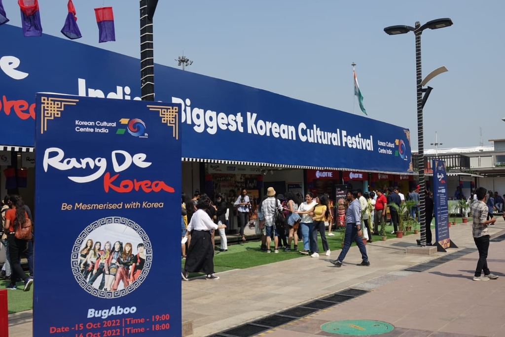 | ▲ 뉴델리에서 열린 한국문화축제 '랑 데 코리아' (뉴델리=연합뉴스) 김영현 특파원 = 15일(현지시간) 인도 뉴델리에서 열린 한국문화축제 '랑 데 코리아' 2022.10.15 cool@yna.co.kr |