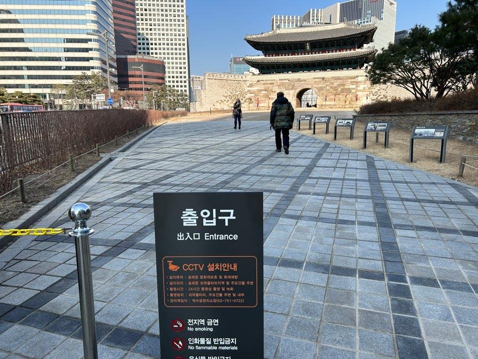 | ▲ 숭례문 정문 (서울=연합뉴스) 김예나 기자 = 8일 오후 서울 숭례문 입구에 폐쇄회로(CC)TV 설치 및 금연, 인화물질 반입 금지 등을 알리는 안내판이 있다. 2023.2.10 yes@yna.co.kr |